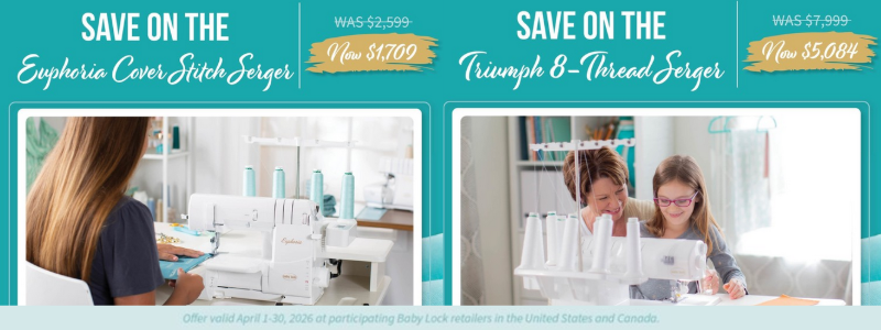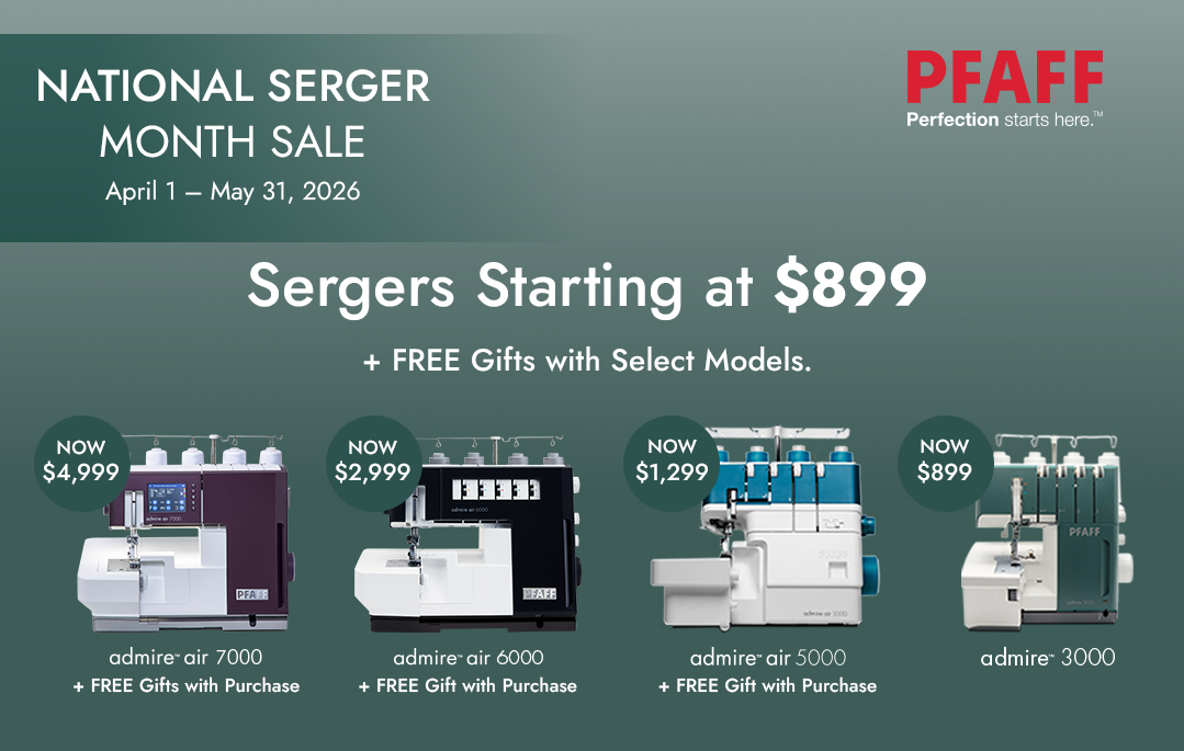 *=Certain restrictions apply. Customer must be a current Sew Fine member. Trade-in Trade-up Program and Discounts may not be combined with any other offer, financing promotion, coupon, or discount. Sew Fine discounts are not available on tuition, labor, and some merchandise. Prices subject to change without notice. Cynthia’s Fine Fabrics reserves the right to modify services and programs. Kit fees may apply.